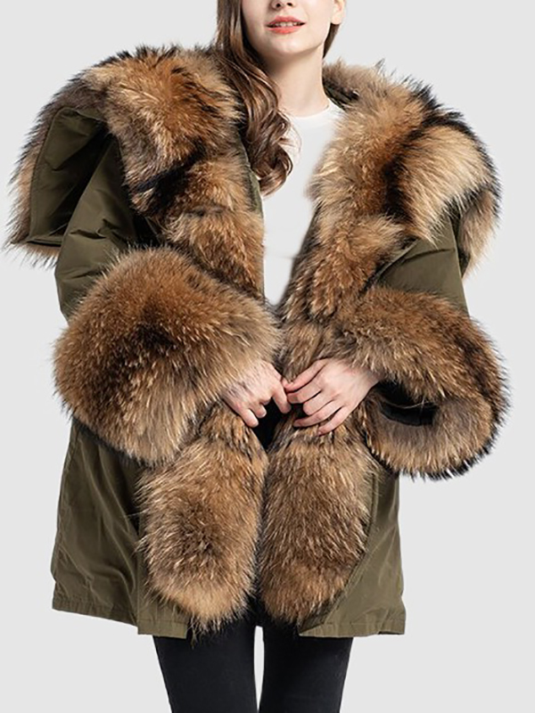 Women's Military Army Green Winter Coat Jacket Parka Hood Raccoon Fur