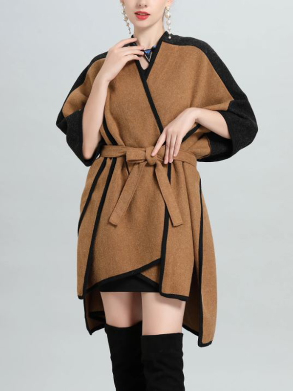 Women's Gray Black Wool Blend Cape with Sleeves