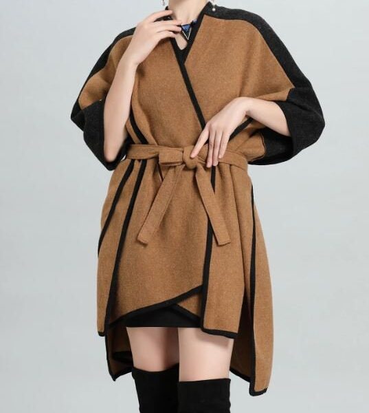 Women's New Black Red Wool Cape, Wrap, Shawl with Sleeves