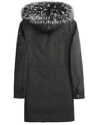Men's Black Winter Jacket Parka Coat Silver Fox Fur Trim Fur Lining Hood