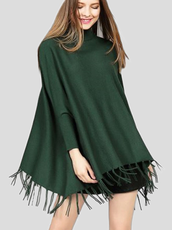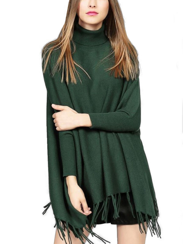 Women's Green 100% Wool Sweater Poncho with Sleeves