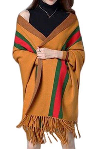 Women's 100% Wool Poncho Cape Shawl Wrap Gray Camel Sale
