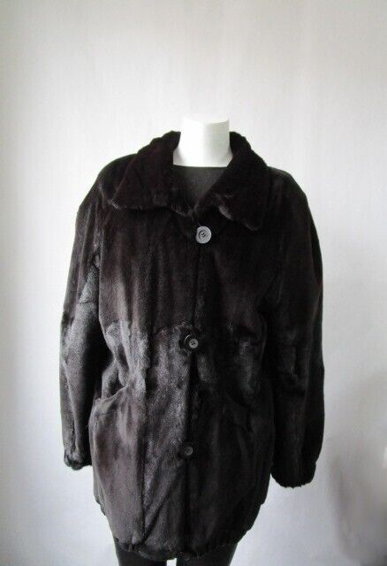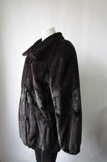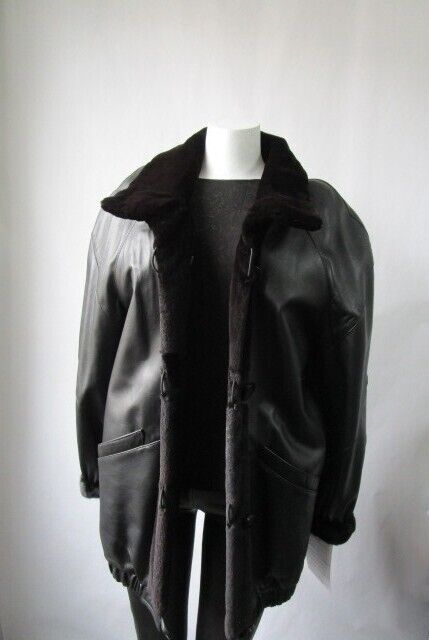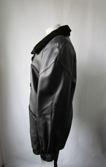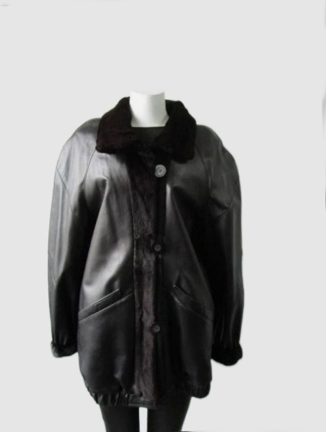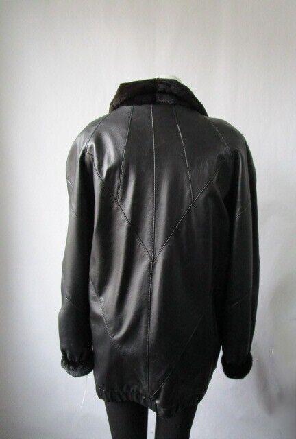 Black Leather Mink Fur Coat Jacket Women’s 10 Reversible