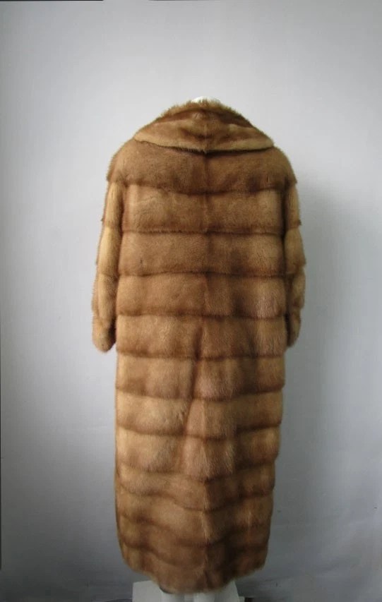 Beautiful pastel mink fur coat for women. Shawl style collar mink fur collar, top quality full horizontal Canadian mink fur pelts, front pockets, front furrier closures and original satin lining complete the look of this beautiful fur coat.