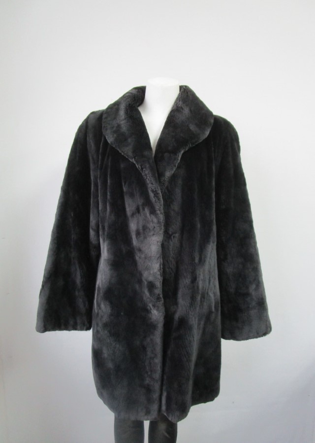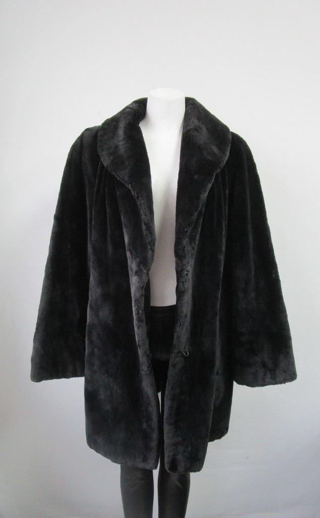 Superbly soft and plush black sheared beaver fur coat / jacket Shawl style sheared beaver fur collar, side slit pockets, front furrier closures and satin lining complete the look of this magnificent fur coat. Fur and lining in excellent condition. Cleaned and glazed.