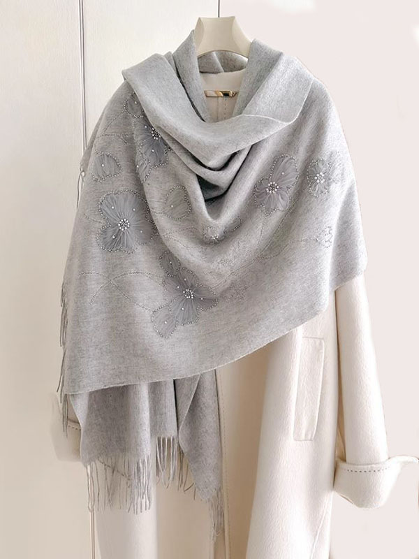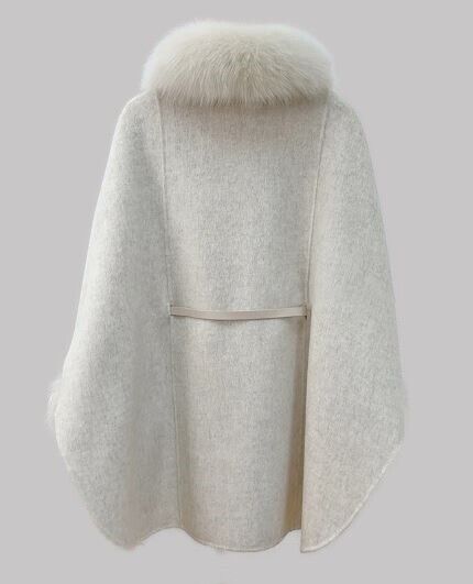 Women's Brand New Cream Cashmere Wool Cape Cloak Jacket with Fox Fur