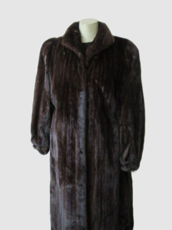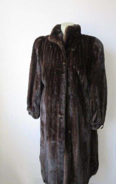 Top Quality Full Canadian Mink Fur Pelts, Side Pockets, Front Button Closures, Warm and Cozy Mink Fur Collar and Satin Lining Complete the look of this stylish fur coat. Fur and Lining in EXCELLENT Condition.