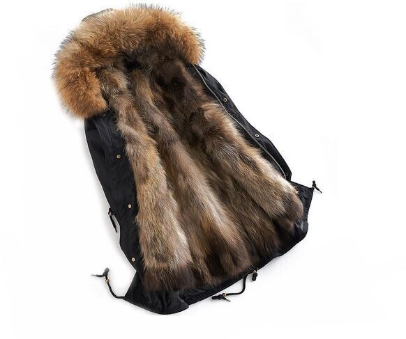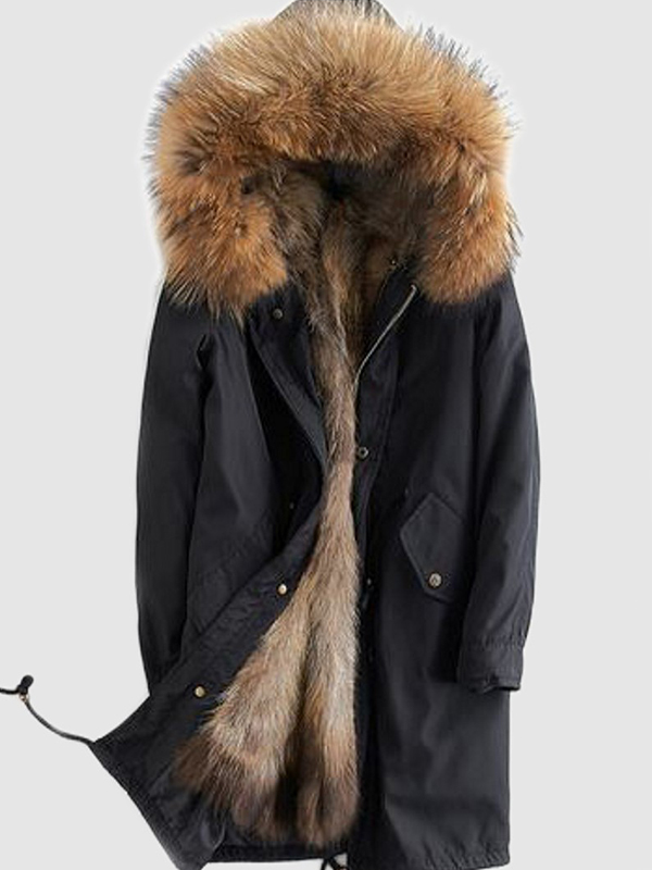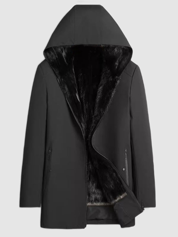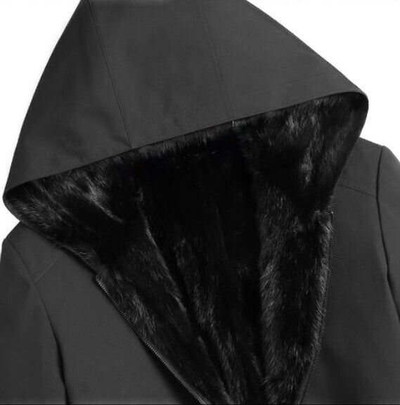 Men's Black Winter Jacket Parka Coat Jacket Mink Fur Lining HOOD