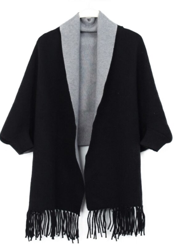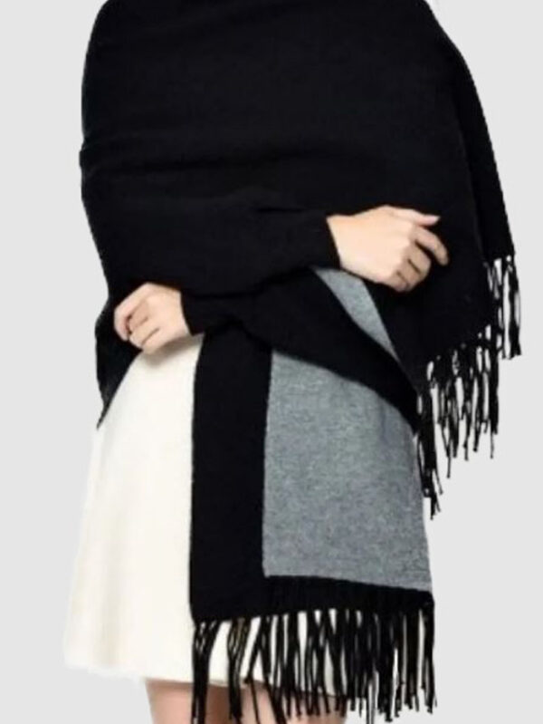 Women's Gray Black Wool Blend Cape with Sleeves