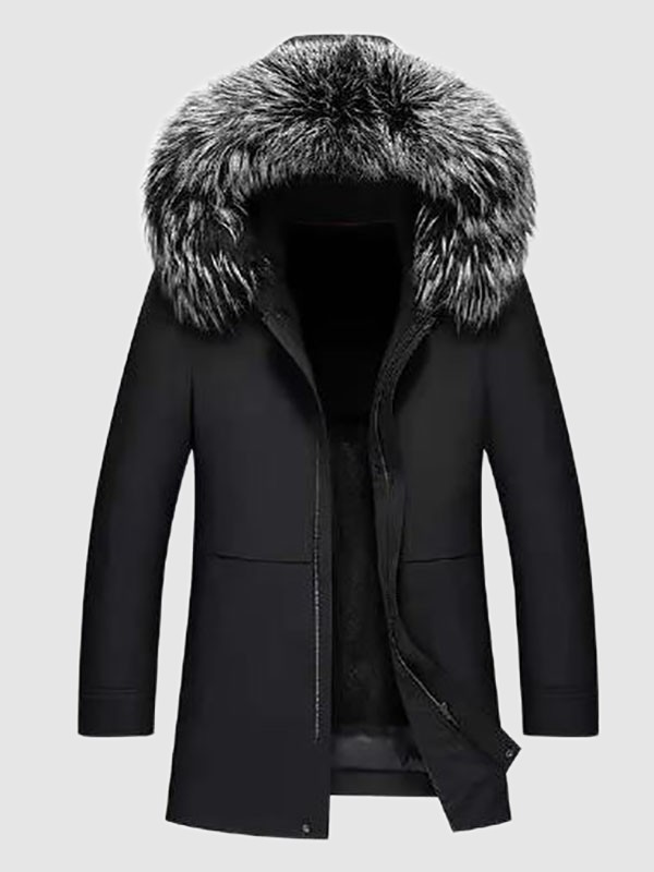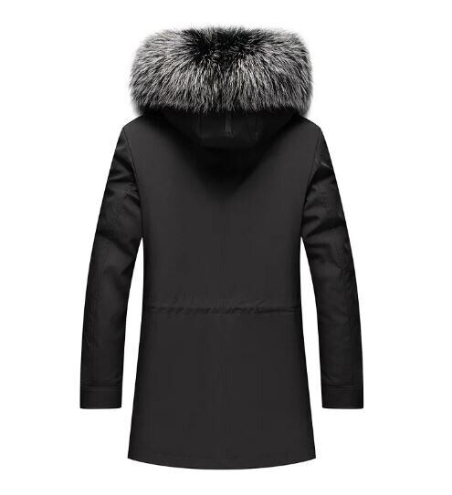 Men's Black Winter Jacket Parka Coat Jacket Mink Fur Lining HOOD